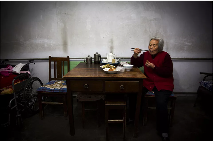 山東。一個麻醬燒餅,一碗玉米面稀飯,一盤白菜炒肉,就是這位老人的晚飯。麻醬燒餅是北方多個省市的名小吃,麻醬還可以做成麻醬糖餅等小吃