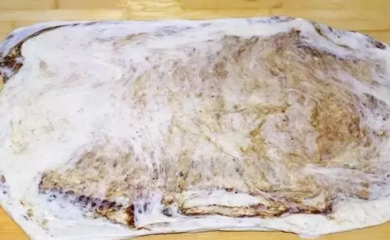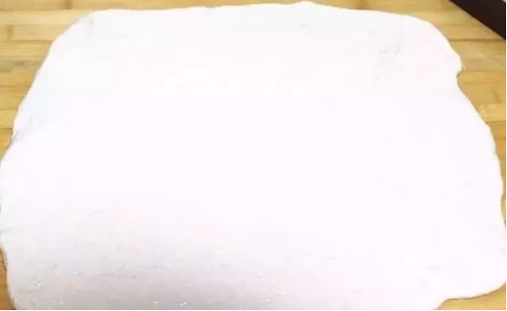 8、再把面團(tuán)用搟面杖搟成大面餅。