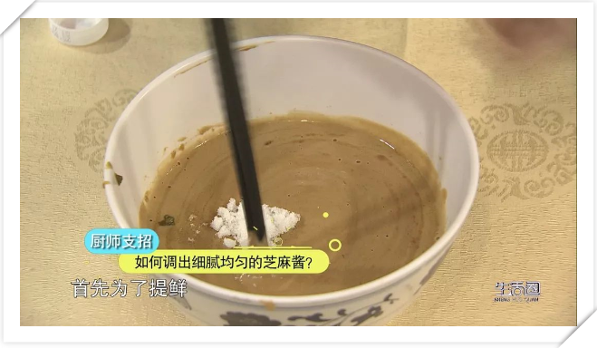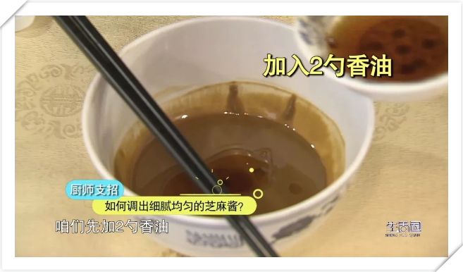 關(guān)鍵是要在加水之前先加入適量的香油進(jìn)行攪拌,這樣可以讓芝麻醬充分軟化,有效避免疙瘩產(chǎn)生。