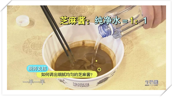 要想調(diào)制的芝麻醬細(xì)膩均勻不出現(xiàn)疙瘩,第一步就是要對(duì)芝麻醬進(jìn)行稀釋。