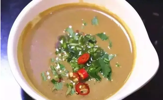 2、芝麻醬納入小盆內(nèi),分?jǐn)?shù)次注入紅湯,邊加邊順一個(gè)方向攪拌,至稀糊狀時(shí)加入韭花泥、生姜汁、鹽、味精、香油和紅辣椒油等充分?jǐn)嚢杈鶆蚣纯伞?/span>