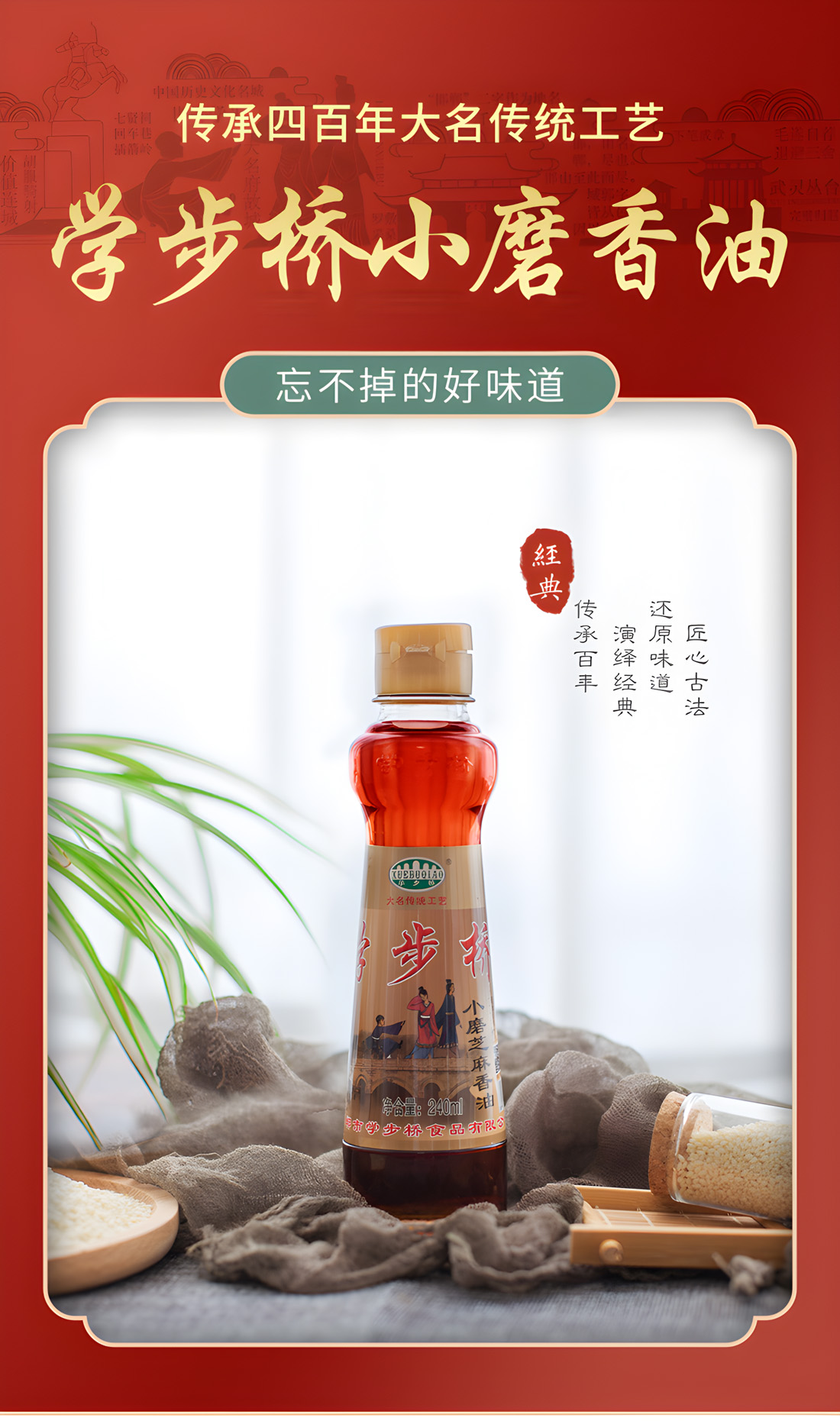 選用優(yōu)質(zhì)芝麻為原料,傳統(tǒng)石磨工藝,匠心研磨,磨出滴滴好香油。精致小瓶包裝,適合小家庭自用,調(diào)餡、涼拌菜、做湯,烹煮煎炸燒,樣樣在行!